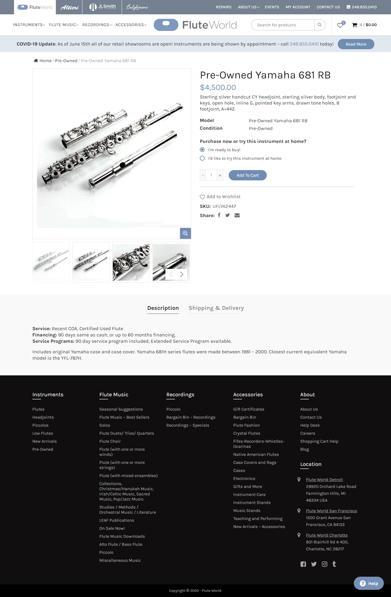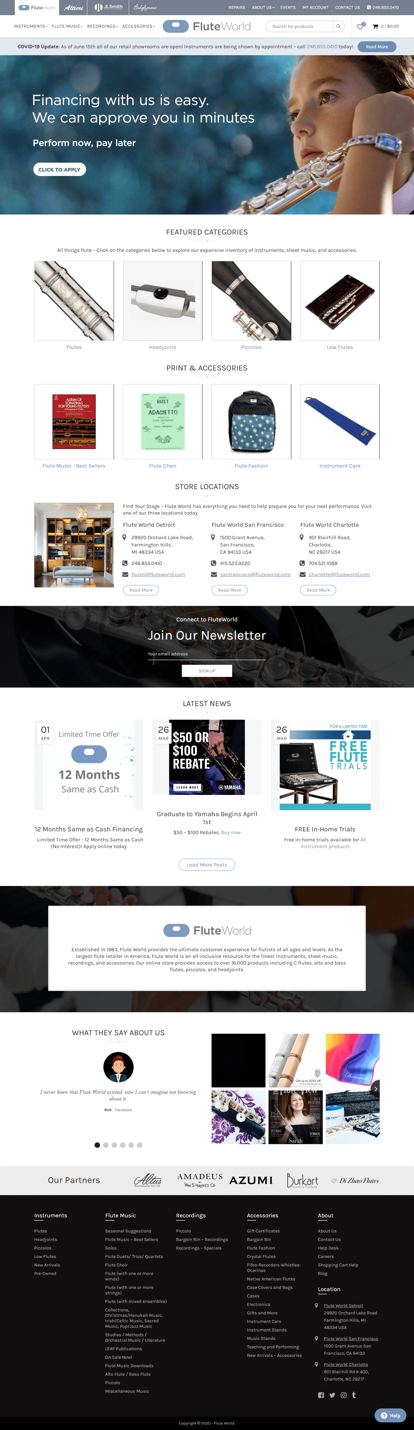 The vision was to design an ecommerce store that puts emphasis on their entire product line, offers seamless e-commerce integration, and gives detailed information about each type of product and service. We worked diligently with Flute World to create a strong and appealing eCommerce experience for their customers, so they could easily browse and buy any of Flute World’s products online. We designed a fully responsive website that brought their brand & products offered to center stage throughout the site. Here are some of the features we incorporated into the website.
